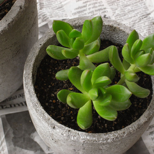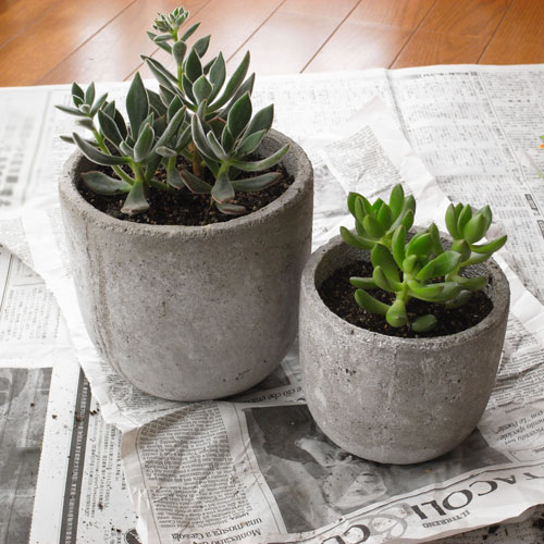ガッサリした雰囲気のセメントのポット+多肉2種類を購入。